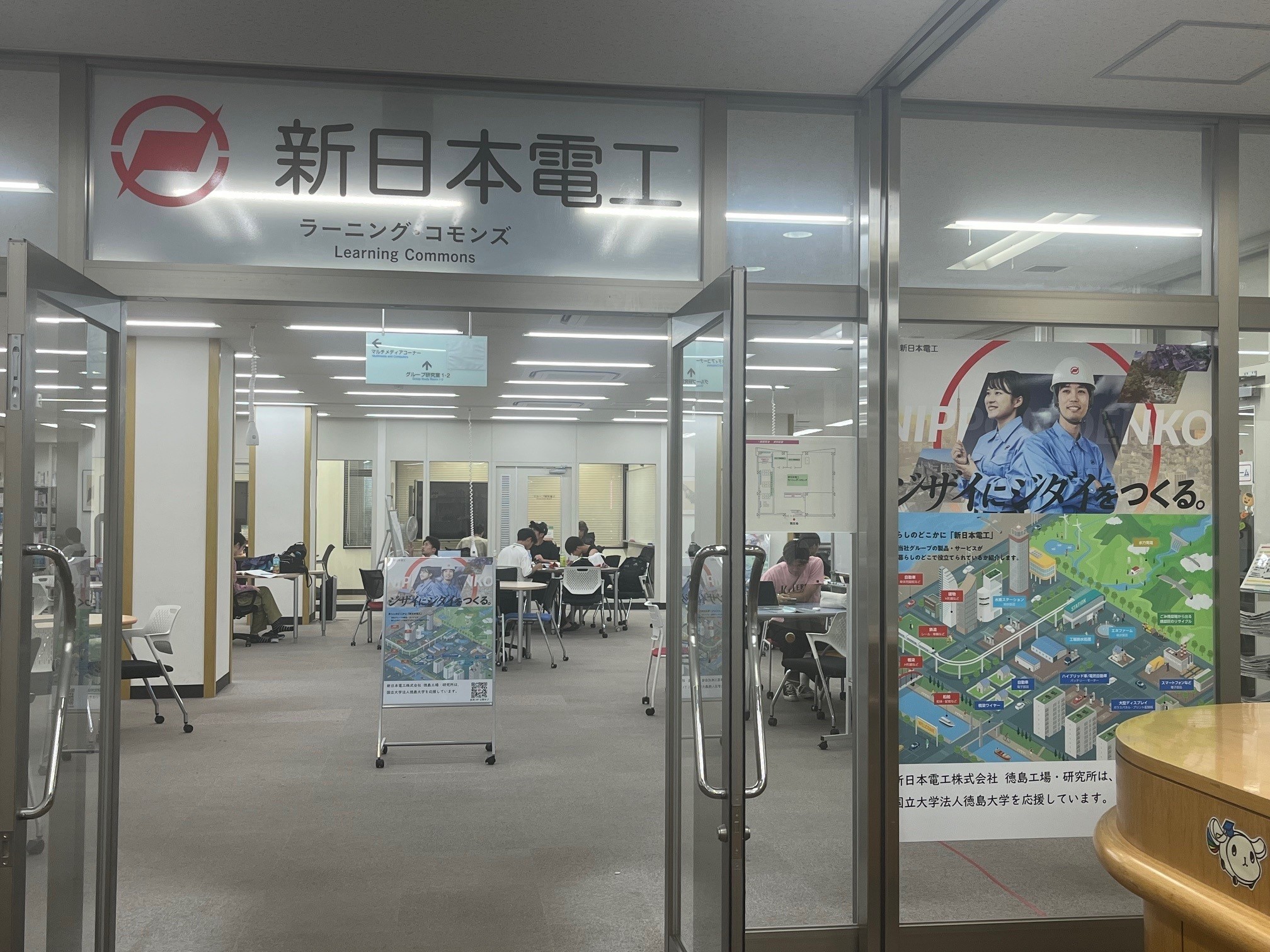 これに伴い、附属図書館本館1階ラーニングコモンズの愛称が、「新日本電工 ラーニングコモンズ」となりました。