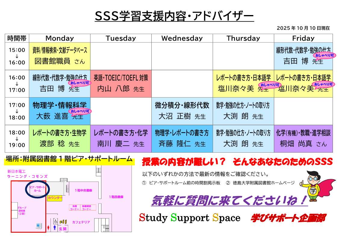 SSSは、先生や図書館職員、大学院生がアドバイザーとして学習支援を行う企画です。